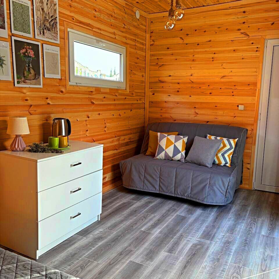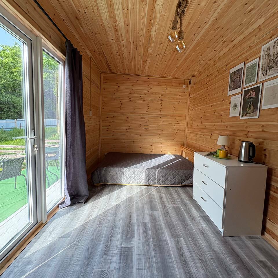 Комфортное проживание семьи с 2-мя детьмиДвухкомнатный домик с панорамными окнами и террасой.