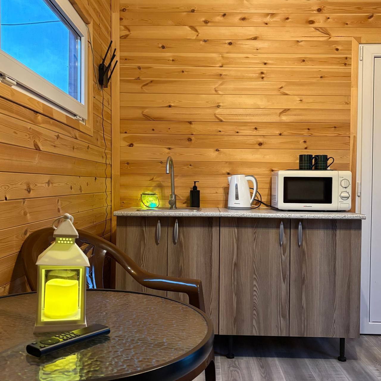 Комфортное проживание семьи с 2-мя детьмиДвухкомнатный домик с панорамными окнами и террасой.