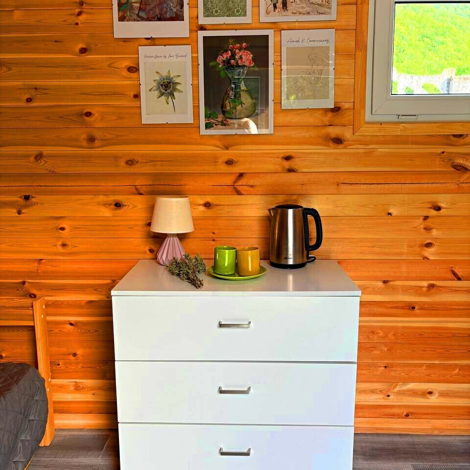 Здесь мы устроили свой небольшой дачный комплекс для тех, кто стремится провести несколько дней в тишине и покое на природе, в собственном домике в окружении гор, под успокаивающий шелест реликтовых лесов.